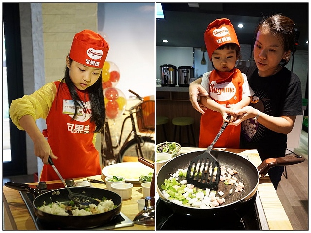 之前食安問題不斷,我們家在家吃飯比例增加不少,尤其允嘉阿嬤有一身好手藝,小姑我就算還沒學會阿媽的私房料理,但天天看也會點皮毛,儘量都自己煮給阿弟吃,阿弟最愛雞肉香菇湯,最近又給他加了蛤蜊湯頭多了海味更好喝,假日最常煮雜菜麵或簡單的蛋炒飯,出席可果美的親子童樂趣,有名廚親自教我們做美美味小撇步,學到蕃茄炒飯可以加準備各種配料下去炒,最好有五種食材,一盤炒飯營養滿分!