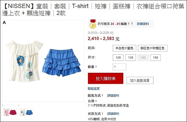 生女兒真的好燒錢,髮飾、衣服、配件、鞋子,什麼東西往她們身上穿戴都好可愛,當然有時是媽媽自己很愛買XD。我超愛幫妹妹買衣服,全家就她身材保持的最好,一直沒發胖,所以到現在連95公分的褲裙都還穿得下,她很愛漂亮!每天要穿什麼都自己作主,只要不喜歡的硬逼她也沒用,於是接到日本nissen童裝的團購文邀約,給她自己捧著NB一頁一頁挑貨,這回挑了好多one piece的洋裝,一件就可以出門,方便好看又涼快!除了洋裝,她這個年紀走光也會小害羞,既想飄逸又怕走光的話,褲裙是個好選擇,尤其日系童裝都走俏麗可愛的洋娃娃路線,我幫忙篩選時也傷透了腦筋,每件都超可愛低(很難下決定)!好在團購價是全館四折(包括童裝、女裝、睡內衣及雜貨),只有七天的優惠期,就連剛上架的秋冬款也是這個折數,大家可以趁換季撿便宜,如果是購買童裝我建議買大一號,至少穿兩季才夠本啊~~