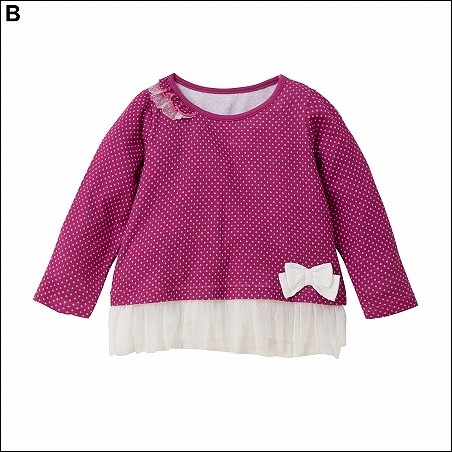 順便幫小可愛的初秋上衣一起整理出來,這件90~120的薄紗下襬雙層長袖T恤,三色各有千秋,配裙搭褲都好看!薄紗、蝴蝶結還有右肩上的點綴都增加甜美的氣息,一件549元,對了90cm尺寸的肩膀為好穿脫的鈕扣開口喔~~
