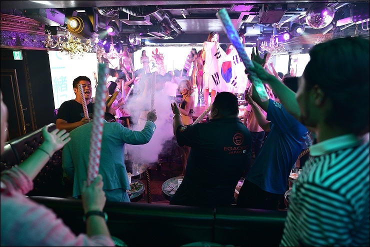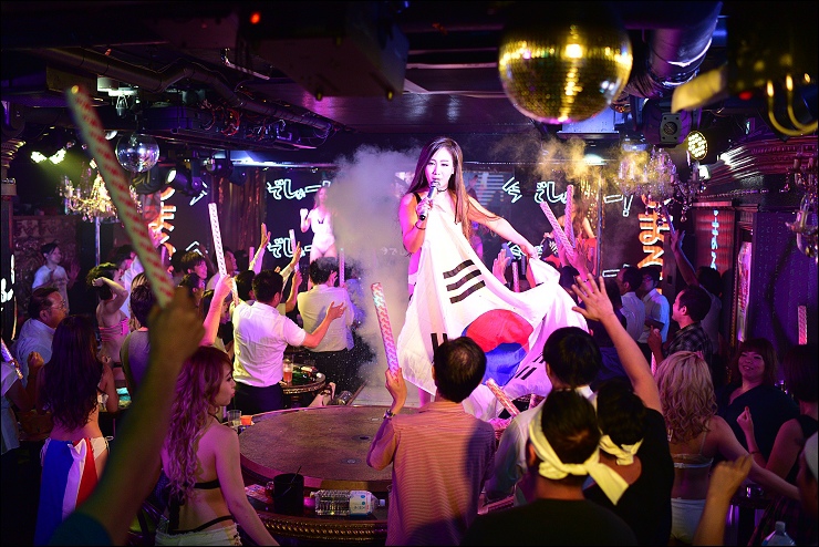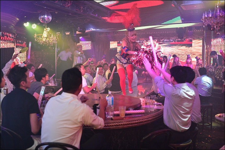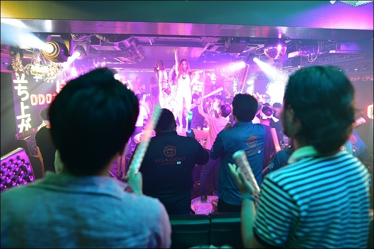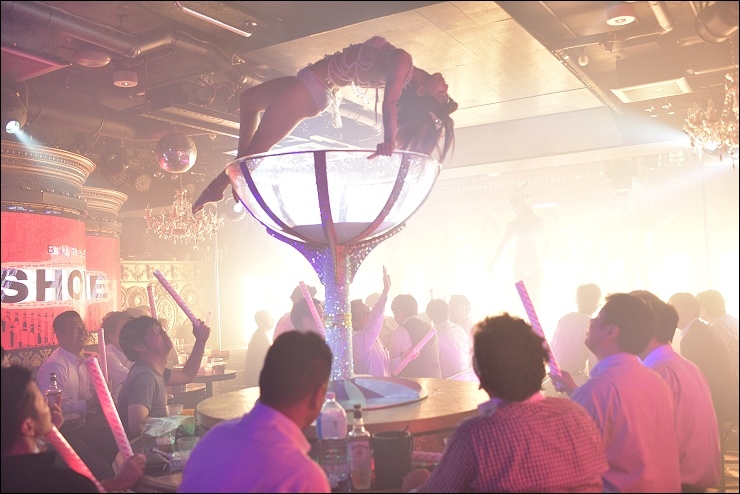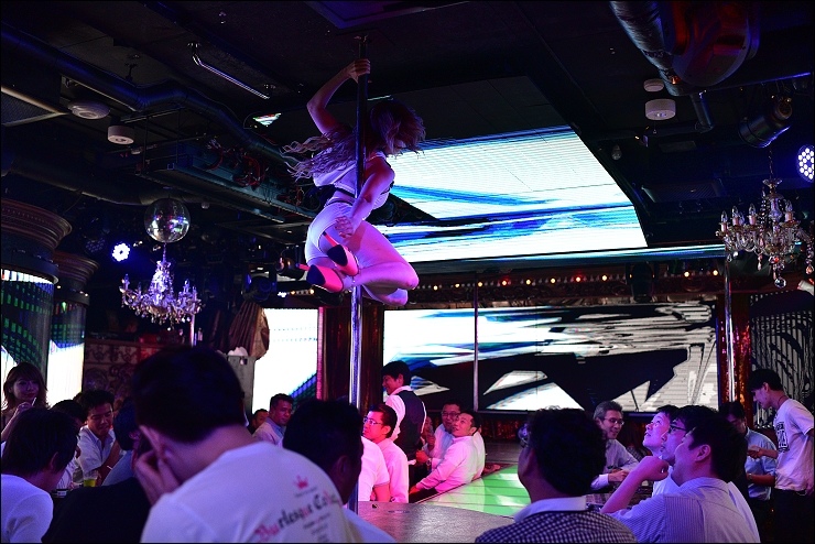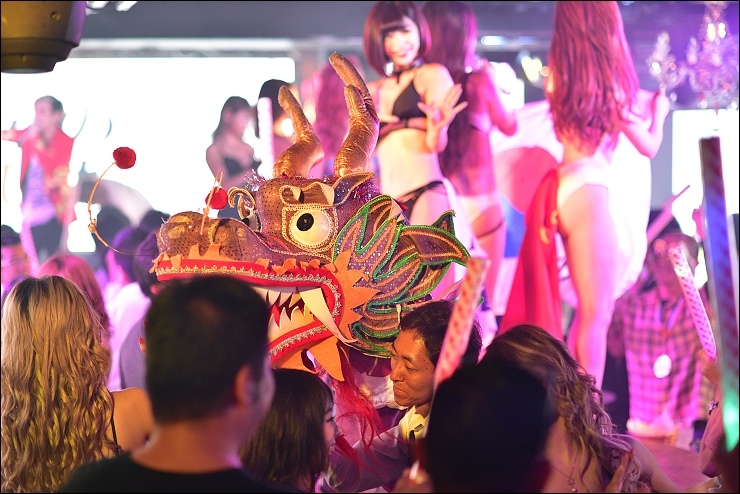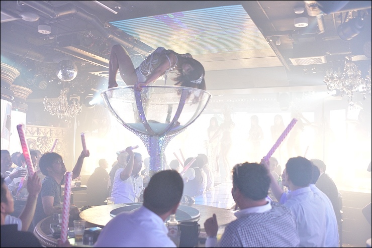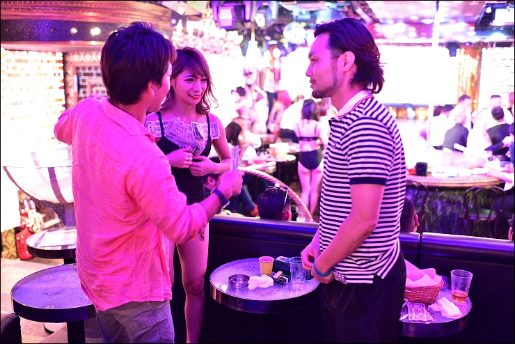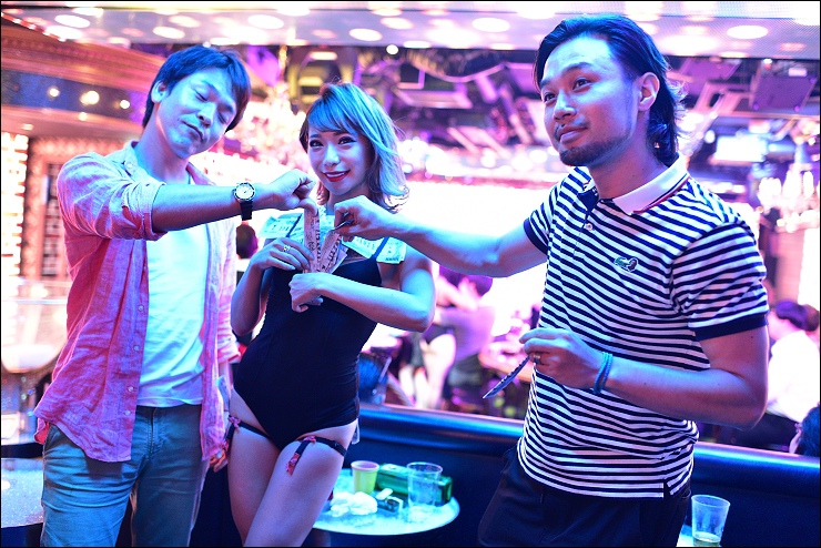 舞者妹妹的比基尼裡面還會再穿一層肉色的內衣褲,以避免打賞小費時曝光!和客人的接觸也止於聊天、握手和拍合照,在場的日本大叔客人真的很放得開,聽到要拍照立馬擺post讓大家一次拍個夠。