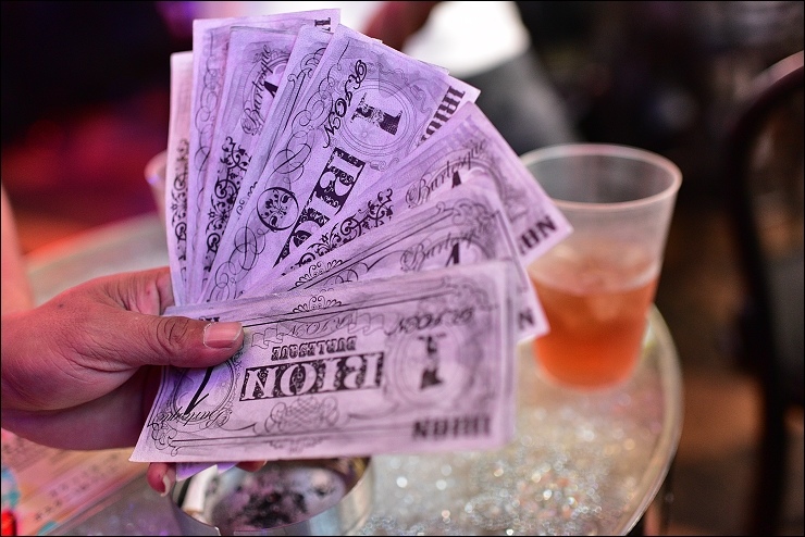 看完表演最後就是客人打賞的小費時間,一千円日幣可以換一疊紙鈔。