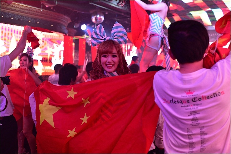 整個大半場都是很熱鬧的歌舞秀,最後段的打賞時間就比較清涼一點,正妹舞者會穿著比基尼出場,搖著各國國旗拉近和觀光客的距離。