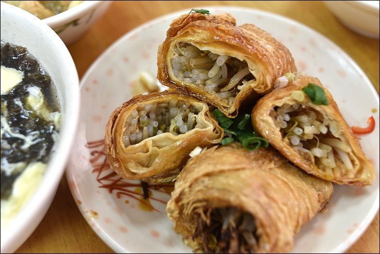 小菜是自助式自已拿,網友推薦的銀芽腐皮捲口味還不錯。