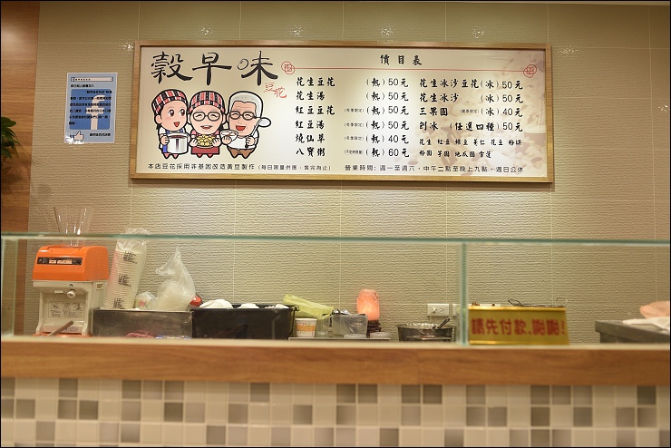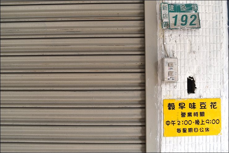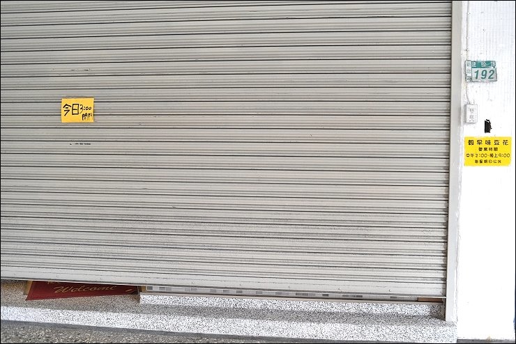 吃完雞肉飯時間差不多來到下午一點半多一咪咪,走到不遠處的主要目標「穀早味豆花」,打算吃個甜點續攤,原本以為中午2點就會開門營業,結果店家鐵門只有小小開一個縫,中間貼了張今日3點開門的紙條orz...