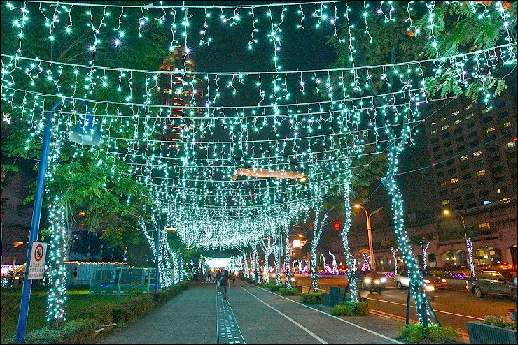 新北市政府內外和周邊道路都有大型藝往燈飾裝置