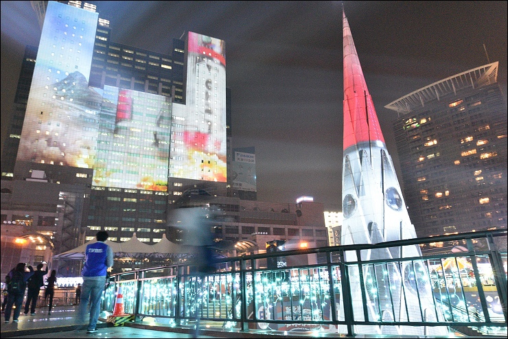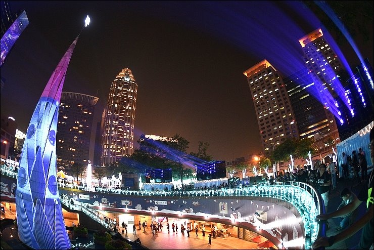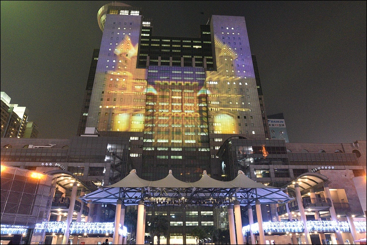 反方向往板橋車站看,3D投影的光束真的很驚人,電力吃緊啊~