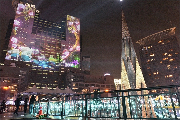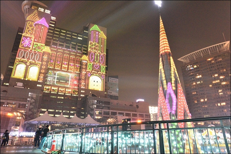(以下為2016/11/17舊文)2016新北市歡樂耶誕節11/19本周末正式點燈開城,這幾天路過的朋友已經看的到3D光雕秀的大型測試!往年這個時候就是板橋一年一度的交通黑暗期,捷運三環三線的施工再加上新開幕的新北文創觀光夜市,開車來肯定塞爆,然後好不容易塞到板橋車站附近還要辛苦找車位(只能說關關難過關關過)。因為新北市歡樂耶誕節的場地就辦在新北市政府廣場和三鐵共構的板橋車站周邊,搭高鐵、台鐵和捷運都是出站1秒就會到,所以強烈大家還是搭捷運來卡A通,當然如果可以的話,平日晚上來最好。今年的主燈秀除了3D立體光雕耶誕樹之外,還首度投影到新北市府大樓,現場看起來的3D投影畫面清楚精細,配合聲光效果,感覺有點星際大戰或復仇者聯盟登場的科幻效果。
