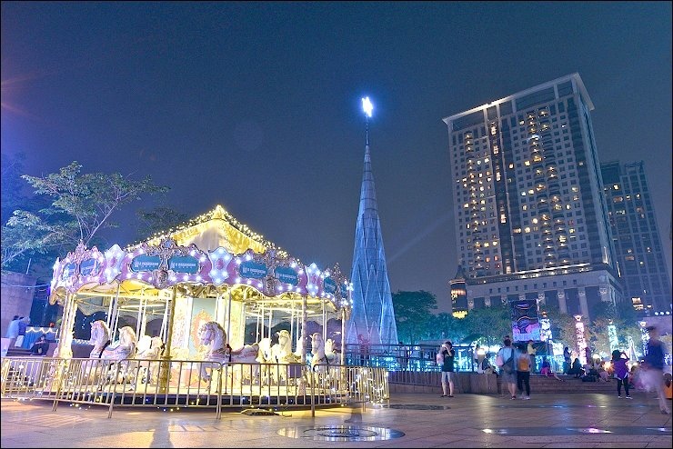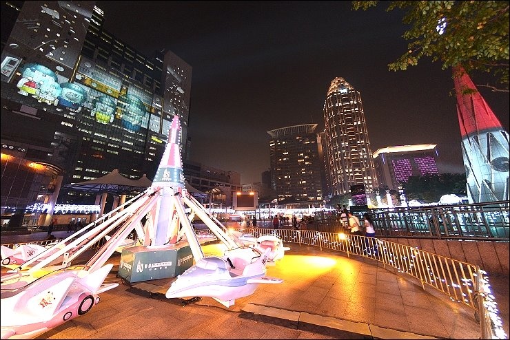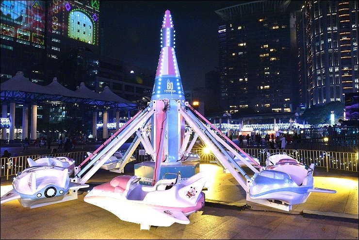 跟前幾年一樣,竹筍燈耶誕樹二旁有免費的夢幻旋轉木馬和冒險旋轉飛機,在欣賞3D光雕投影的空檔,看到人少的話,也可以帶小朋友去玩一下,他們一定會很開心。如果是12/31~明年1/2元旦假期來新北耶誕城,市民廣場還加碼大型氣墊遊樂園,有外星人樂園和法老王樂園可以免費體驗。