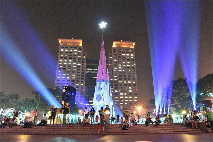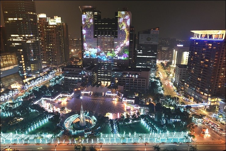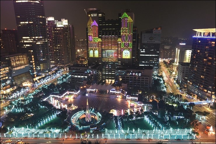 跟去年一樣,今年因為有採訪許可,有市府人員帶路可以在板橋車站樓頂拍照,背景有大遠百、新北市政府大樓和板信雙子星大樓的新北市歡樂耶誕城,仔細看在新北市府大樓投影的動畫,色彩非常繽紛夢幻。為免整晚塞在美麗的板橋不夜城馬路上,請大家務必搭乘捷運來啊~~開車是自找麻煩,公車應該也會塞!