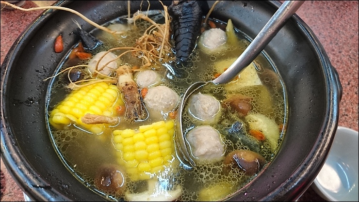 不吃薑母鴨的朋友,也可以點羊肉爐或九尾雞,這天沒吃到羊肉爐(網友不建議點這個),九尾雞的湯頭走爽口清香路線,喝來有味順口,烏骨雞肉好吃,不過價位是薑母鴨的二倍多。
