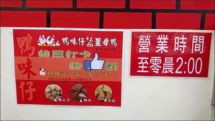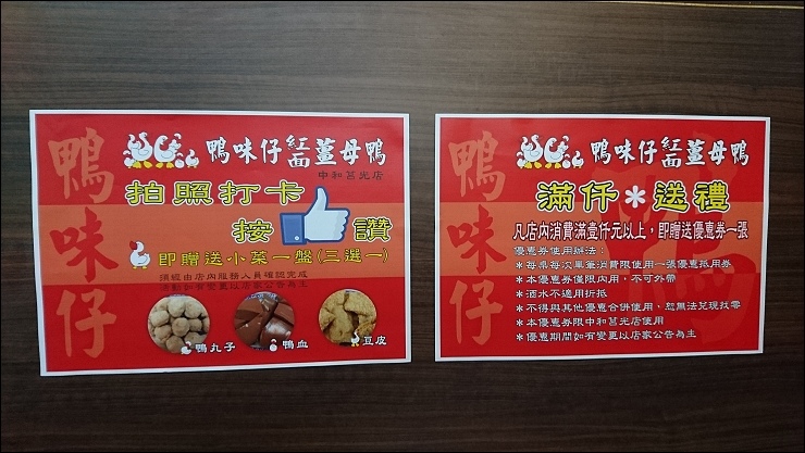 鴨味仔中和店因為是新開店,還在開發客源,現在拍照打卡有送鴨丸子、鴨血和豆皮三選一。