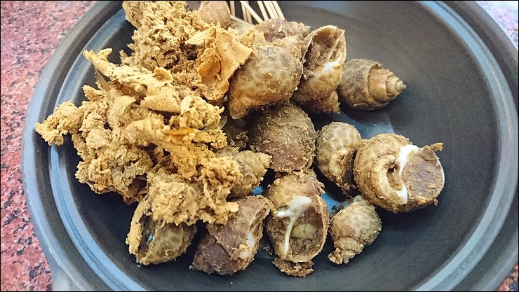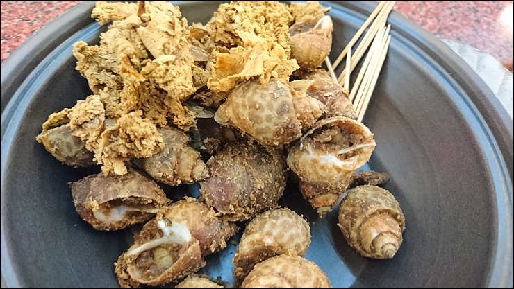 胡椒風螺有特殊吃法,店家建議把螺肉挖出來之後,再搭配旁邊捲捲的胡椒香料一起吃。