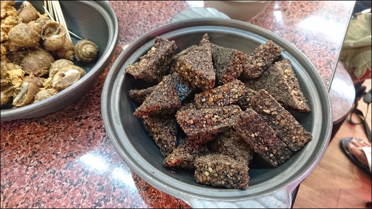 喜歡喝酒的朋友,來鴨味仔必點的下酒菜就是這三道,聽說鴨味仔的分店中,就台北松江店和中和莒光店才吃的喔!香酥尾椎、香酥鴨頭和炸米血糕,其中尾椎附上的炸薑片也很好吃。