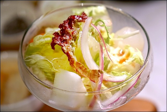 這杯沙拉也是套餐項目之一,但有點可有可無,這天喝到的蔬菜精燉雞湯沒台中的那麼濃,反而配起來比較剛好!