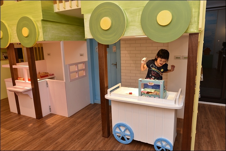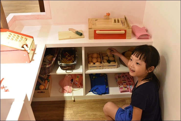 飛天火車車廂下方有二個伴家家酒攤位,攤位裡面的玩具都很有質感,不是隨便買給孩子玩的便宜貨,野馬妹覺得這個商店特別好玩,因為她喜歡當老板賣東西^^