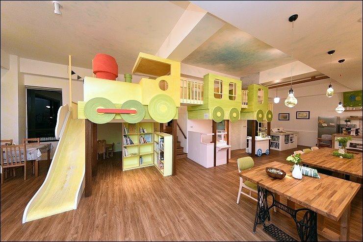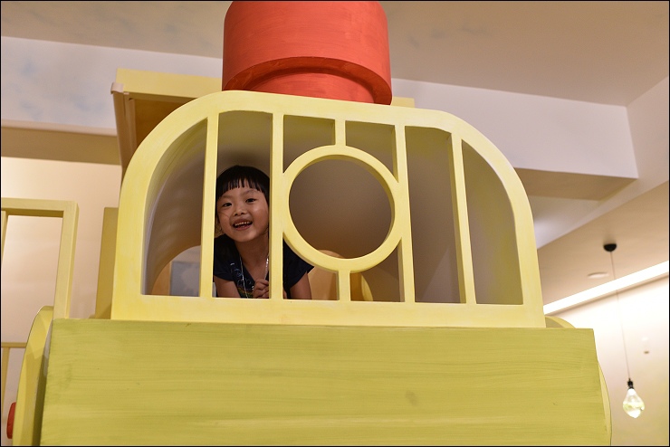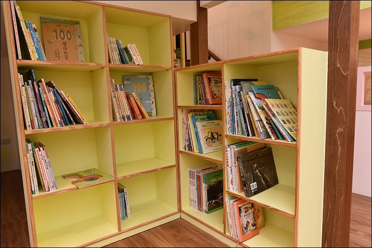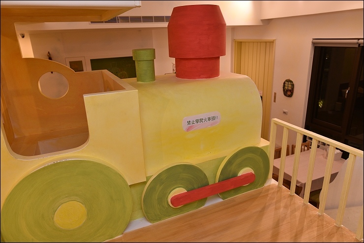 火車頭下方的空間也充份利用,有個童書書櫃和靜態遊憩空間,當客廳大小孩比較多的時候,這裡就變成小小孩的秘密基地。民宿主人說,這個區塊還會再進化喔!期待~~