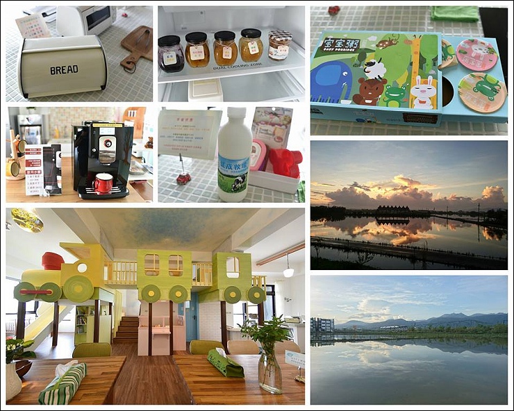 米妞的假期親子美學空間是位於冬山火車站附近的合法宜蘭民宿,我們來的時候是休耕,門口就看得到冬山車站的火車來去載客的水田倒影,如果在收成前來,可以想像是一片黃金稻浪!才進門不久看到大廳這座大型飛天火車溜滑梯,野馬妹就說太晚來check in了啦!!往年在武荖坑舉辦的綠色博覽會,今年4月改在米妞附近的“冬山河生態綠舟”擴大舉辦,門前這一大片農地會變成園區的一個景點“花海迷宮”,屆時入住米妞簡直是住在花海裡,一定非常漂亮!大家可以趕快搶先訂房喔~另外,米妞的假期特別給魔鬼甄的粉絲優惠價,即日起預約3月的房間,週一~週五都享9折優惠喔!