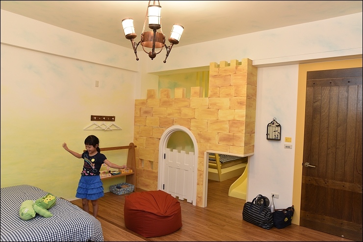 我們這天住的是米妞熱門的小城堡房型(2大2小)!看起來是 “終於可以把孩子關在城堡裡,不要來吵我了” 但實際上是一種“把爸比媽咪關在城堡外面的概念” 。