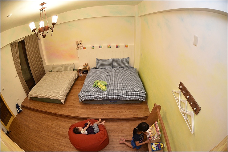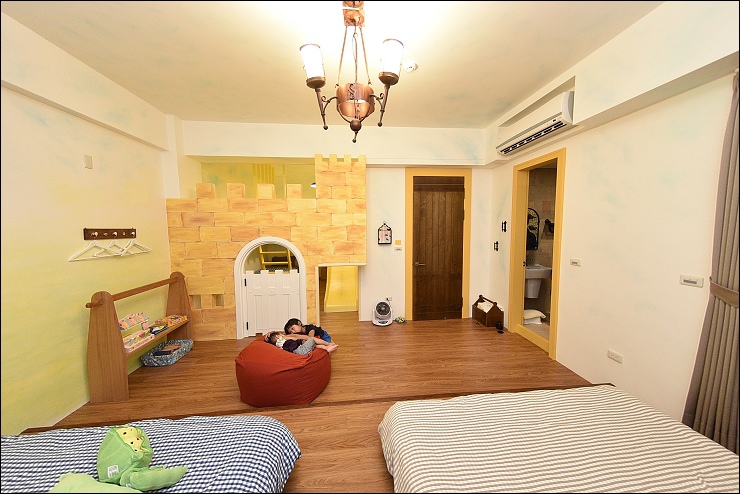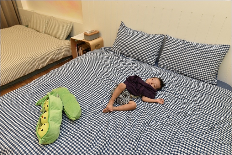 四人房床和房間都很大,床還是用特別訂製的美國進口My Side記憶床墊,小姑家的阿弟玩累了在懶人沙發和床上都睡得好香甜。