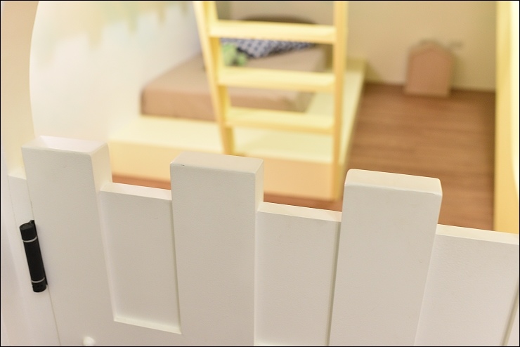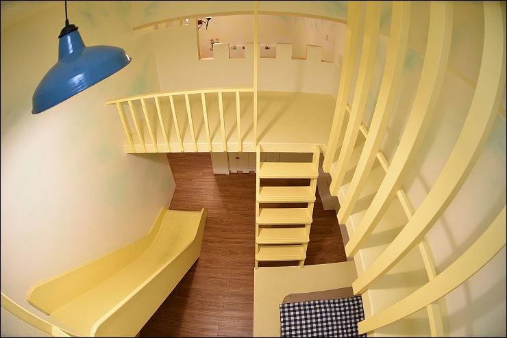 城堡溜滑梯隔間內還可以加一張單人床,這裡通常都是男主人或是大男孩在睡。