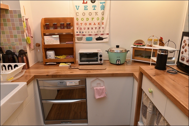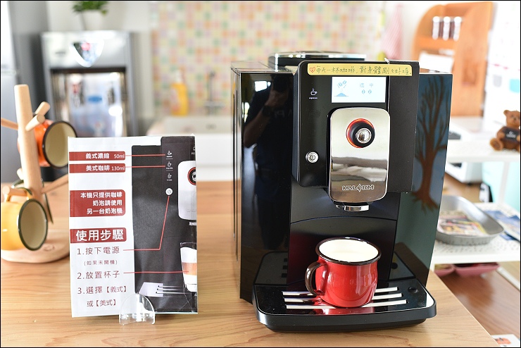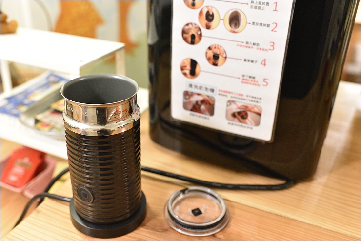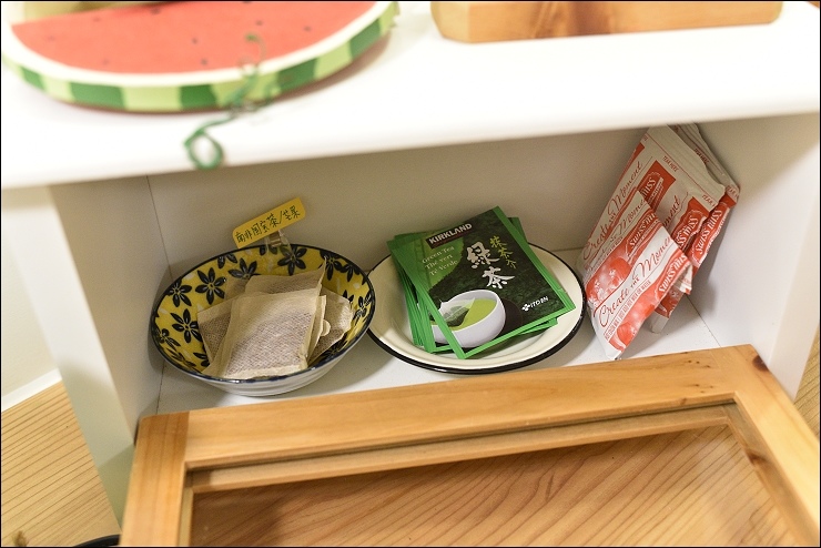 自助式廚房就在旁邊,泡茶喝咖啡的用具非常齊全,竟然連電動奶泡機都有準備。