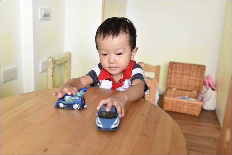小阿弟睡翻了,這時候野馬妹變成小姐姐,在旁邊玩伴家家酒,順便照看弟弟。