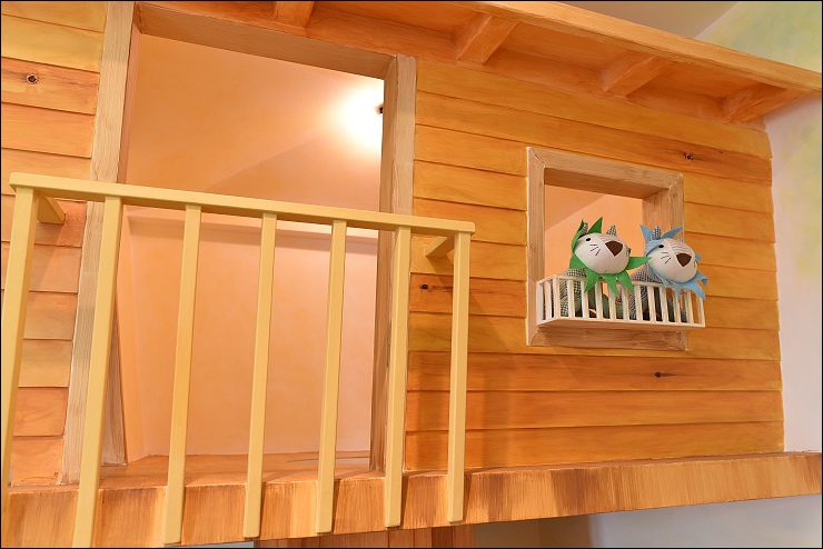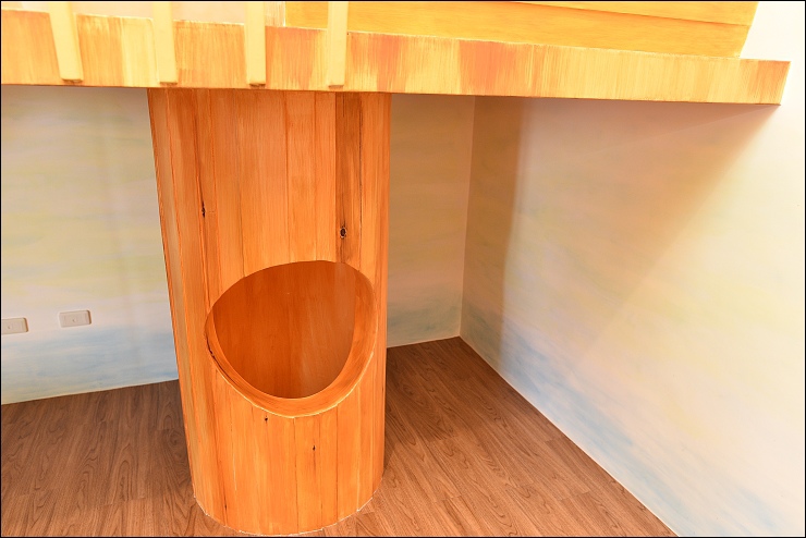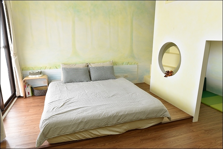 小樹屋房型是二大二小的房型,另一張床擺在小閣樓,不是塞在樹屋,房間的坪數真的很大,只是因為格局的關係,拍照比較看不出來。