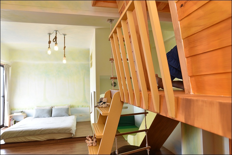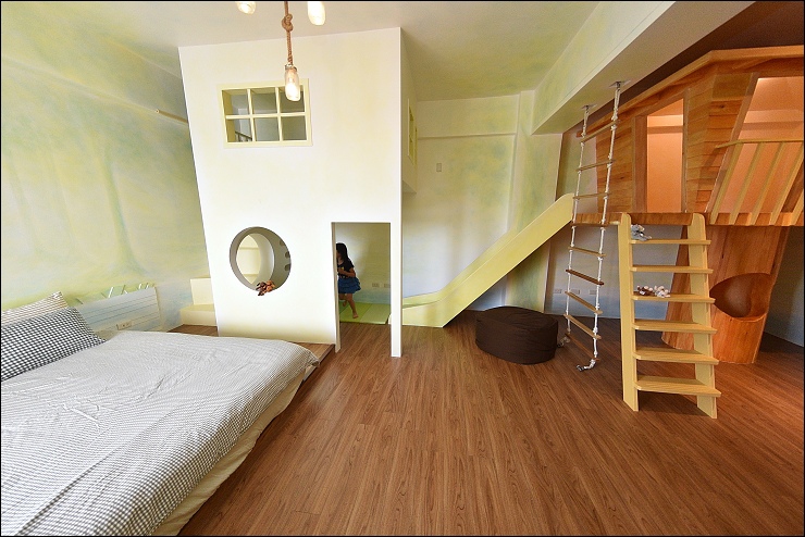 吃完早餐退房之後,民宿主人還帶我們參觀其他房型,這間小樹屋(2大2小)房型也是米妞的熱門房型,野馬妹和小阿弟都超愛!