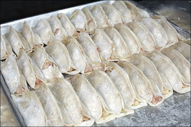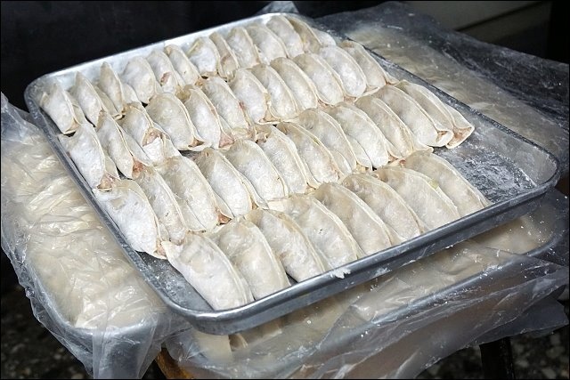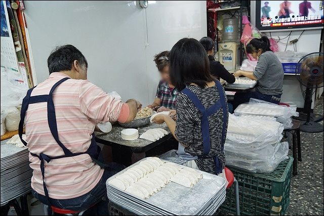 店內除了來吃鍋貼水餃的客人,也有二桌是店家手工現包的快手桌,幾個專業包餃子的小姐們手都沒停過,超強。