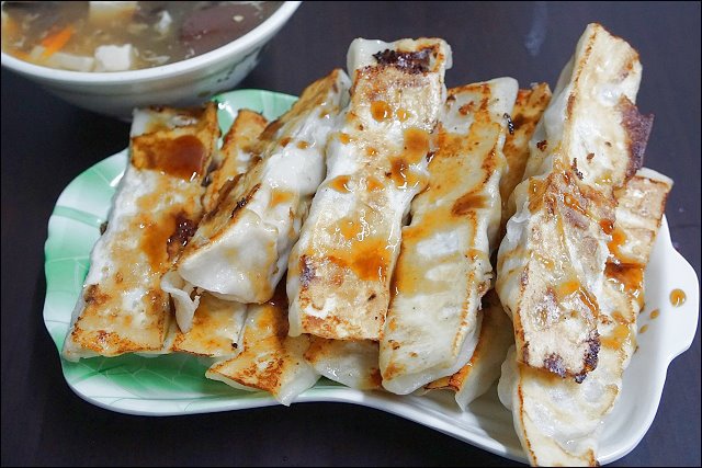 用餐時間鍋貼要等比較久,終於等到剛起鍋的鍋貼上桌啦,一份十顆滿滿一盤,再淋上微甜的醬油,滿足指數很高。鍋貼煎得有焦脆,內餡也很飽滿,是很真材實料又平價的鍋貼。