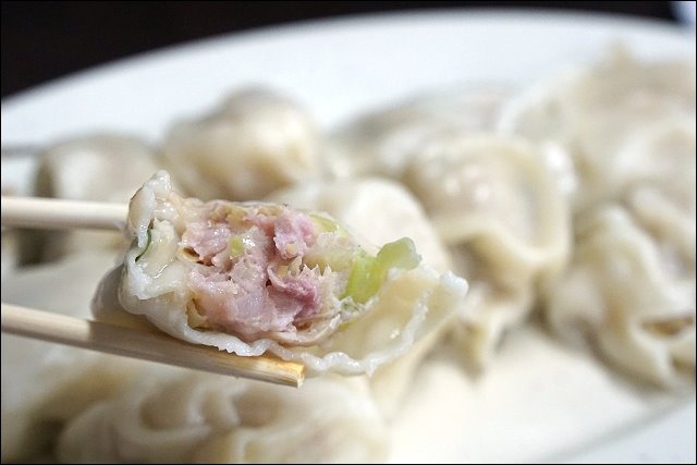 水餃皮算是有一點厚度,不會煮的太軟爛,餡料還滿多的,豬肉的比例偏高。