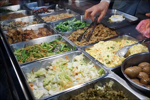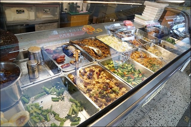 菜色大約有十樣左右,菜色不盡相同,第一次來沒看到網友大推的滑蛋,第二次來就還到啦,可任選四道菜,來買的時候都有熟客自便環保便當盒,還會加菜,好像加一道加五元的樣子。