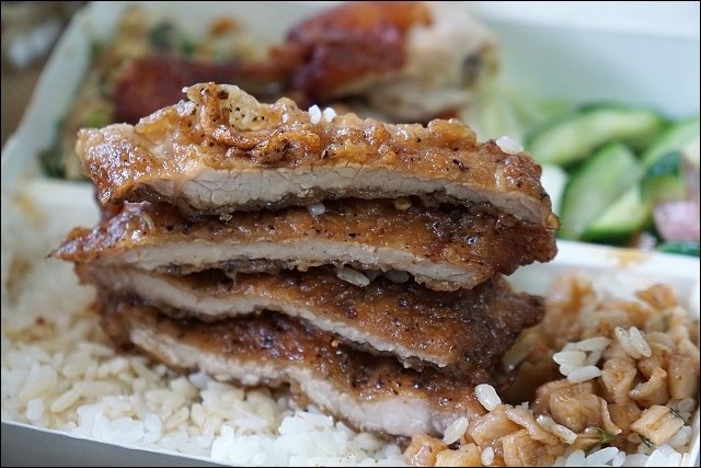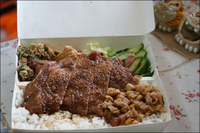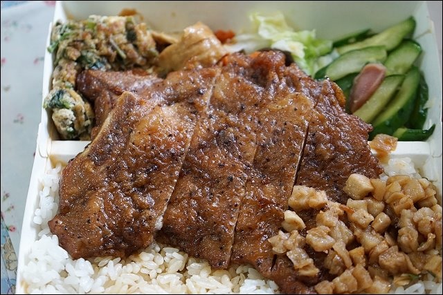 排骨飯75元,帶骨排骨不會很薄,是我喜歡帶點厚度的排骨肉,肉質算不錯,外皮可惜我帶回家吃有點軟掉,胡椒口味。