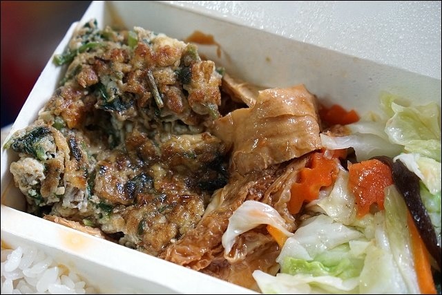 網友留言推薦中和民享街上的真好味便當,說是滑蛋料理非常厲害,小姑我從家騎車過去還滿近的,一訪去的時間有點晚,沒看到滑蛋,只有九層塔煎蛋,很誇張的是一訪買了二顆便當,三兩下就扒光,不知道是我太餓還是便當太好吃,為了滑蛋再訪店家,這次我不到12點就到,雖然滿多人排隊的,不過出餐速度算快,終於一圓我的滑蛋夢!