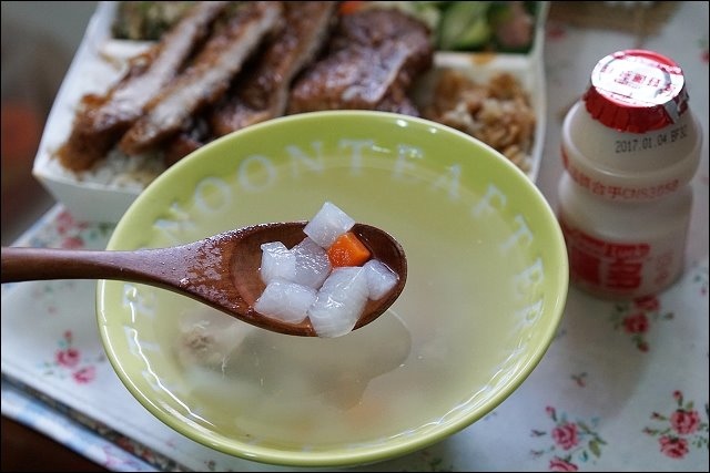 店家沒有內用座位,只有外帶!!有需䙅喝湯請自取。還好真好味附近滿多公園的,像我特地來買便當,想趁熱吃就是到附近公園吃最快。