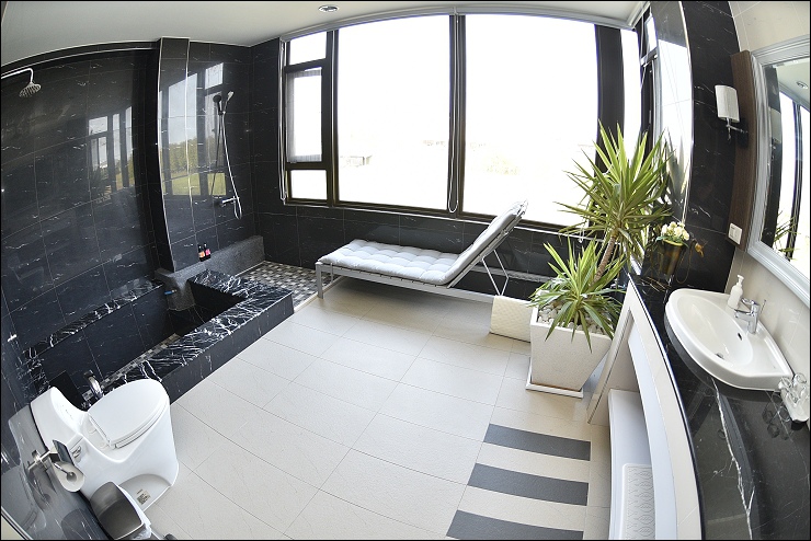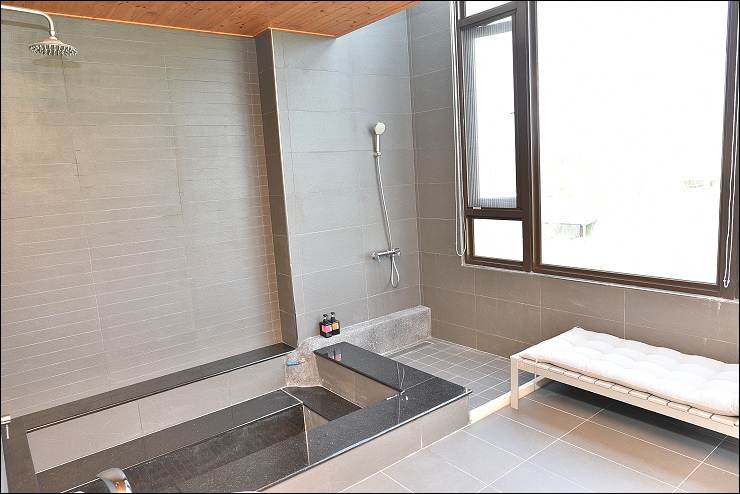 我們這天住的是二樓的豪華四人房,房間設備簡單素雅,重點是浴室一整個大!!有大浴池和整片落地窗,靠近落地窗有個躺椅方便大家飽覽田野風光和星空,不過窗簾整片拉開,好像不太適合泡湯吼~