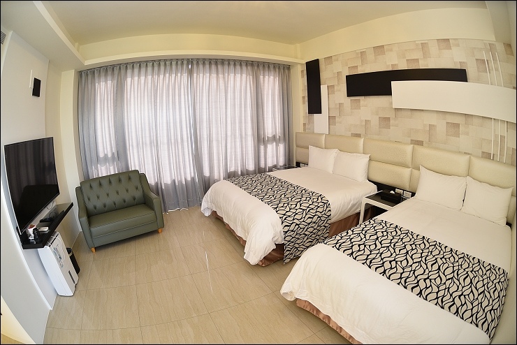 三樓豪華雙人房的格局跟二樓豪華四人房的格局相似,都有快比房間大的浴室,只是房間放了一張超大雙人床和一張沙發床。