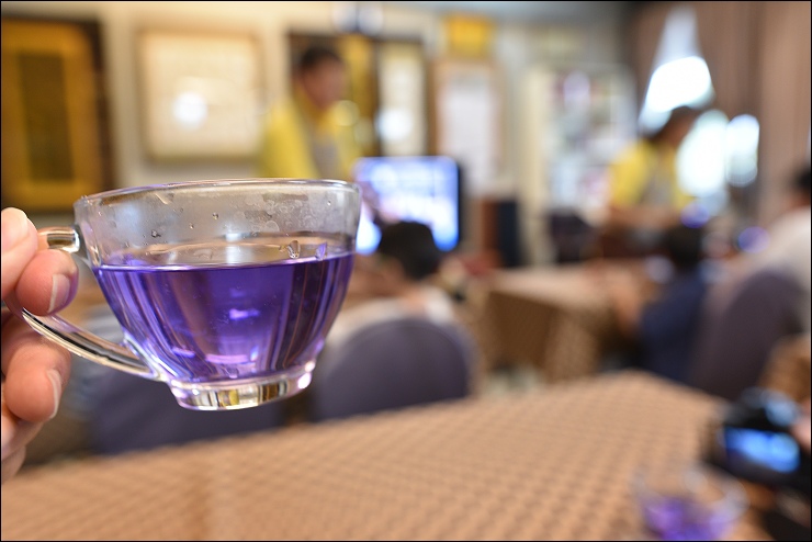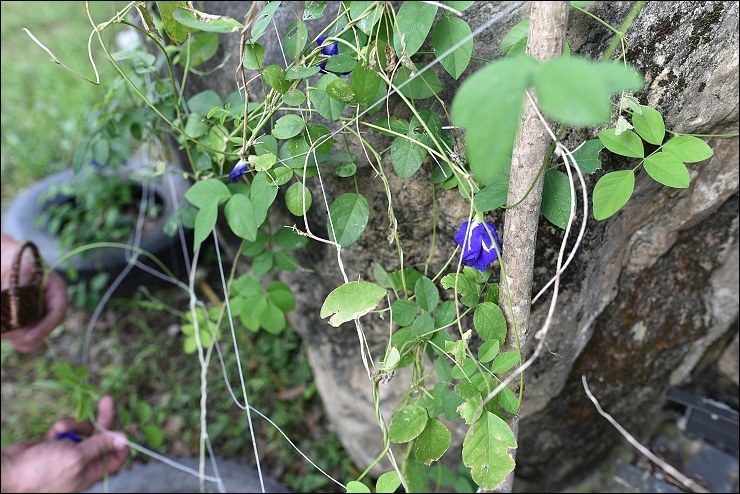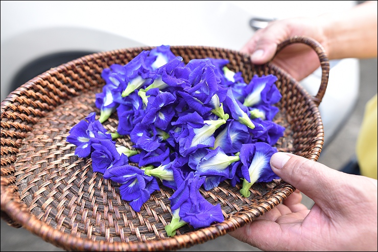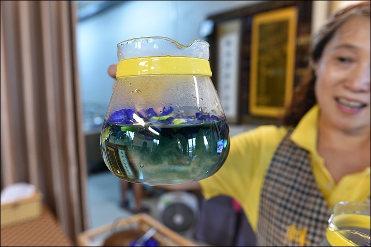 進入現烘咖啡世界之前,先在天使之吻鮮焙咖啡的庭院採摘現在茶飲店最夯的蝶豆花,鮮泡邊聽咖啡相關知識的解說。