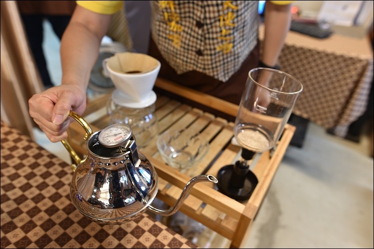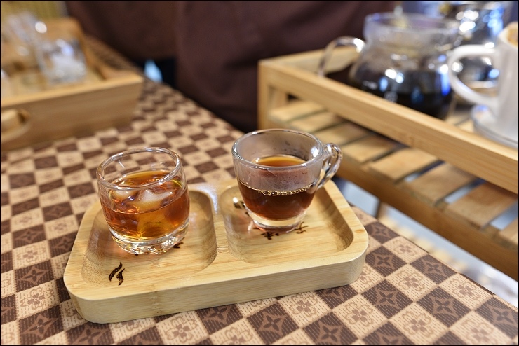 剛烘焙好的咖啡豆現磨手沖,看要喝熱的喝冰的都可以,味道會有不同變化喔!