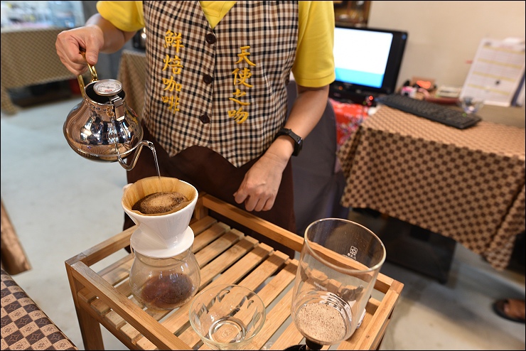 在房間簡單休息過後,接著來到蘭庭民宿配合的天使之吻鮮焙咖啡,這裡面會簡單介紹咖啡知識、對可以親手烘焙咖啡,甚至DIY成掛耳式的咖啡,這應該是在台灣很少見的體驗活動。