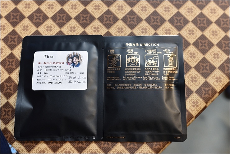 最後最後還有特別的紀念品,把今天沒喝完的現烘咖啡豆作成個人專屬掛耳包,活動設計成這樣真的不簡單,只是鳥大叔覺得這活動比較適合大人慢慢品味咖啡香,因為活動體驗時間較長,怕小朋友待不住。