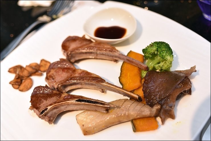主餐有伊比利豬排、帶骨羊排、肋眼牛排和鱈魚排等選擇,住宿這天牛排和羊排的評價是前二名。