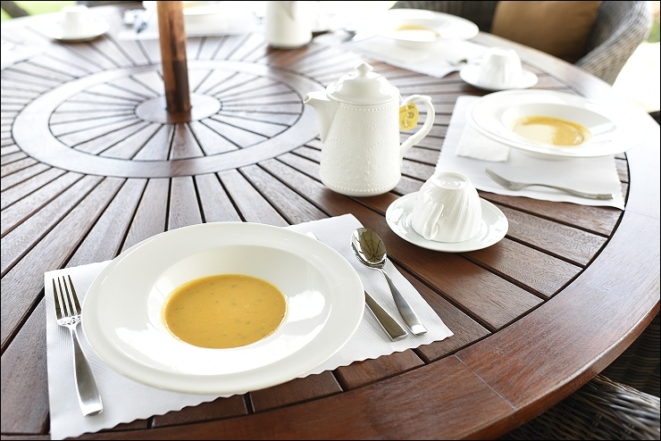 餐後甜點水果,這天剛好有大廚駐場,才有特別的擺盤雕花,平日是沒有的喔!