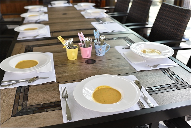 早餐和每房贈送的二客2客頂級海陸大餐,都是直接在民宿一樓的玻璃屋享用!大家應該都聽過宜蘭無菜單料理的始祖員山玻璃屋,多年以前超難訂(現在就不知道啦!),只要是蘭庭的房客,就可以直接在民宿享用另類的玻璃屋無菜單料理啦XD