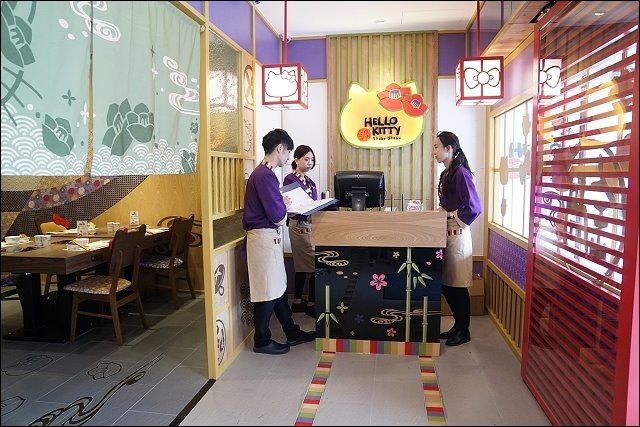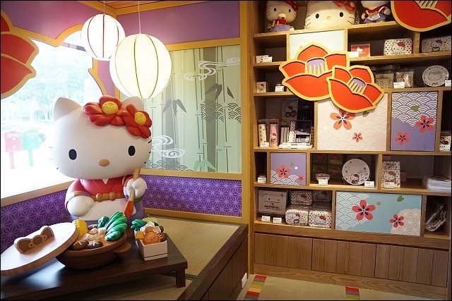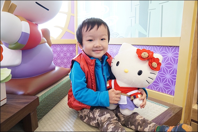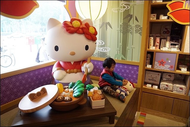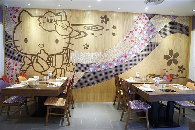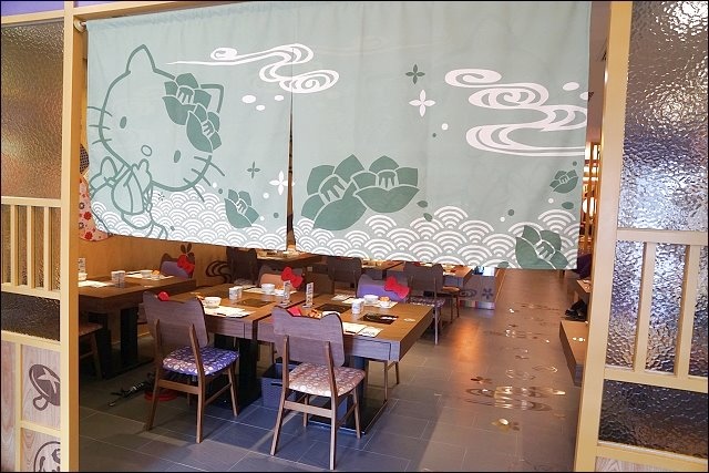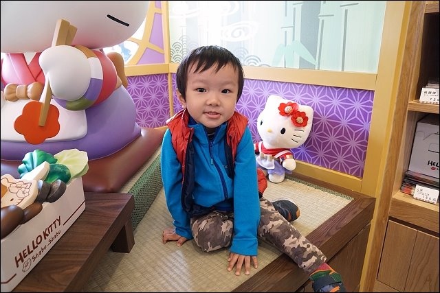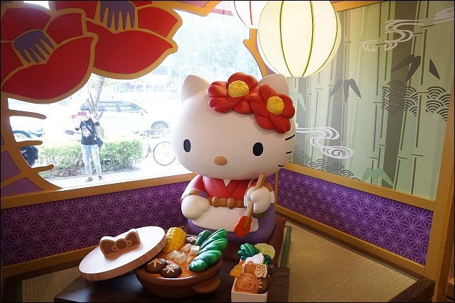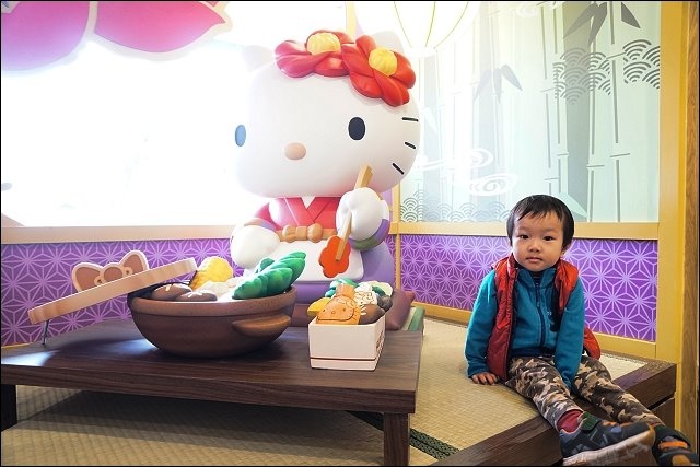 進門的左手邊好殺底片,大型HELLO KITTY陪你吃火鍋,特別設計山茶花做為HELLO KITTY的頭飾,特地設計踏踏米的座位,可以坐在旁邊合照,阿弟好開心哦!!