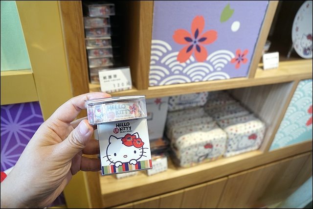 旁邊是一小區會讓錢包裡的小朋友離家出走的賣區,好可愛哦!KITTY盤子、抱枕、筷子、紙膠帶、小零錢包、磁鐵、鑰匙圈等等,每樣都好想要~但不能貪心,我只有小小買了磁鐵跟鑰匙圈回家,之後要來把抱枕買回家。