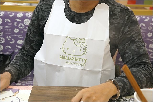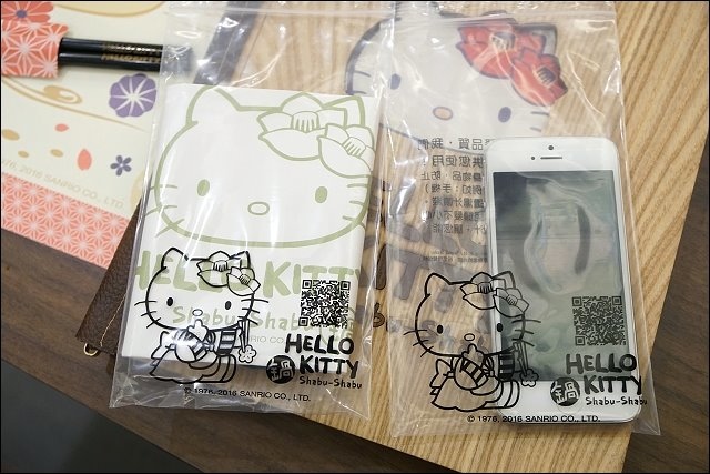 HELLO KITTY餐廳,當然餐具都要是HELLO KITTY呀,而且店家還很貼心提供圍兜兜、髮圈及手機套。