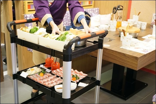 服務生會推出餐車上菜,上菜速度很快。