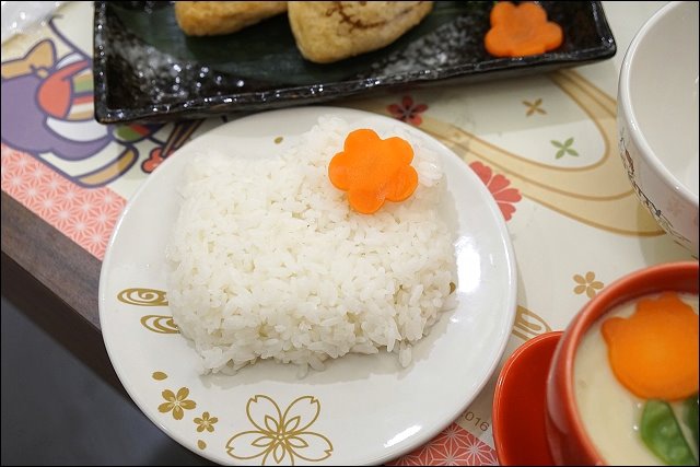 主食白飯或烏龍麵二選一,我家阿弟愛吃麵,烏龍麵我還來不及拍照就下鍋啦,而白飯是用盤子裝,用成KITTY的造型,不過白飯用盤子不太方便吃,比較習慣用碗扒白飯。
