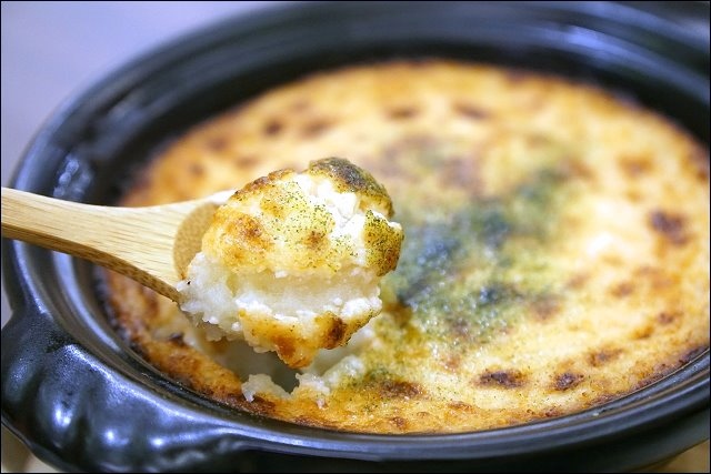 我個人超愛炸物,一看到有炸牡蠣就無法抗拒,炸牡蠣個頭小了點,皮有點厚,不過還算好吃,我們一家三口一人一顆剛剛好,另外酥炸章魚足也還不錯,熱熱吃最好吃,幾乎都進我肚裡,明太子馬鈴薯是二店限定菜色,但我個人不愛馬鈴薯料理。